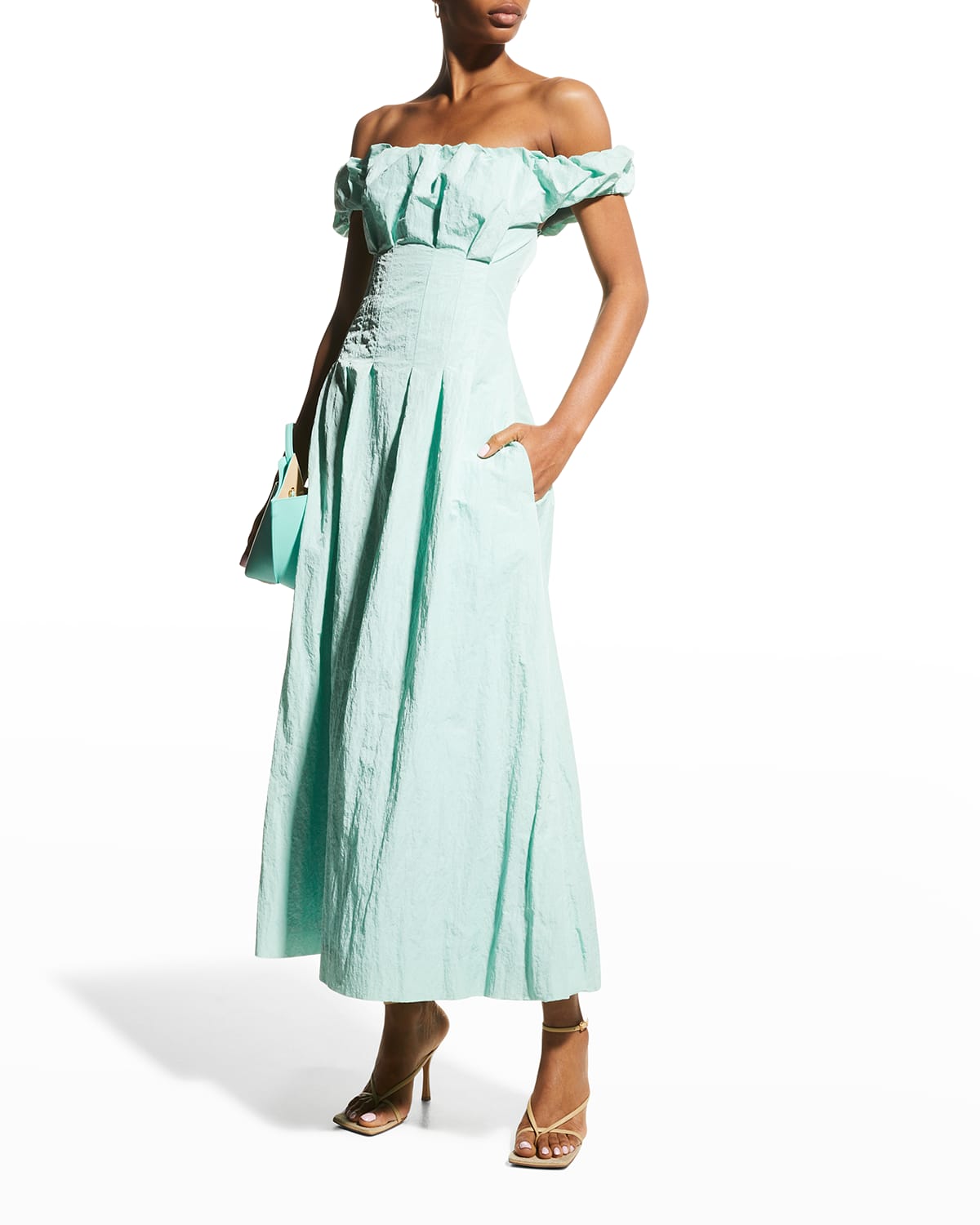 Lela Rose Off The Shoulder Seersucker Maxi Dress Neiman Marcus